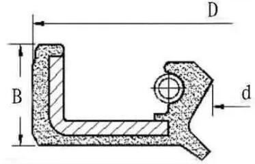 上圖中小d表示油封的內(nèi)徑,大D表示油封的外徑,而B(niǎo)表示油封的高度。例:TC30*40*5,表示型式為T(mén)C(雙唇包骨架)內(nèi)徑為30mm 外徑為40mm 高度為5mm的骨架油封。有時(shí)后面也可跟DIN,GB/T9877-88等表示油封所依據(jù)的標(biāo)準(zhǔn)。油封的內(nèi)徑尺寸范圍一般在:Φ16~440mm,寬度常見(jiàn)為7~20mm。