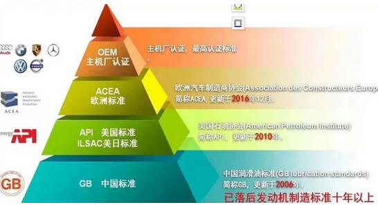 因?yàn)樗麄兣c****機(jī)油 標(biāo)準(zhǔn)相距甚遠(yuǎn),通過下方的金字塔,你就明白這個(gè)含義,會(huì)發(fā)現(xiàn)汽車廠 (OEM主機(jī)廠 ),才是的金字塔上層。但這些 的顯示,一般就是機(jī)油桶背面的一排不起眼的小字。