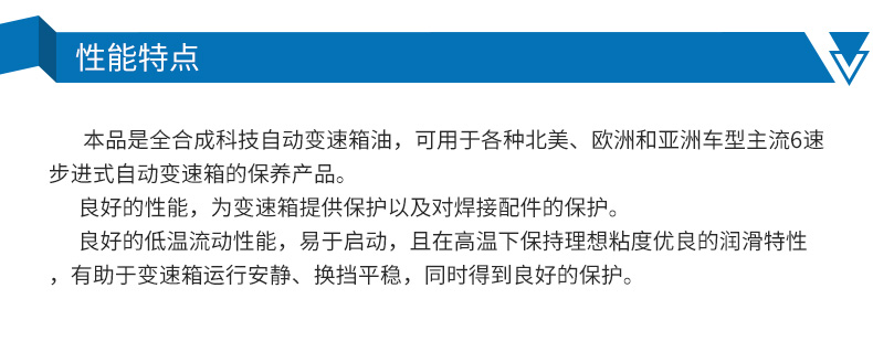 ●本品是全合成科技自動變速箱油可用于各種北美、歐洲和亞洲車型主流6速步進(jìn)式自動變速箱的保養(yǎng)產(chǎn)品??垢g性能為變速箱提供防銹防腐保護(hù)以及對焊接配件的特殊保護(hù)。適合如寶馬3E90、寶馬5E60、寶馬7E65/E66/寶馬X1E84后驅(qū)/寶馬X3E83/豐田系列部分漢蘭達(dá)2013款等車型。