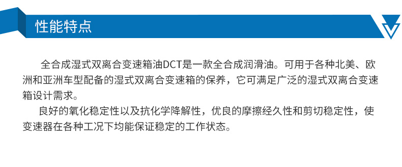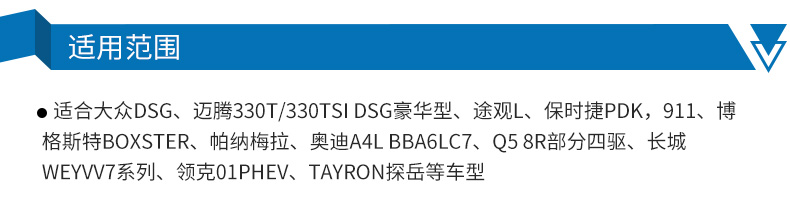 ●全合成濕式雙離合變速箱油DCT是一款全合成潤滑油可用于各種北美歐洲和亞洲車型配備的濕式雙離合變速箱的保養(yǎng),它可滿足廣泛的濕式雙離合變速箱設(shè)計(jì)需求。適合大眾DSG、邁騰330T/30TS|DSG豪華型、途觀L、保時(shí)捷PDK,11、博格斯特 Boxster、帕納梅拉、奧迪A4LB8A6C7、Q58R部分四驅(qū)、長城wEYw7全系列、領(lǐng)克01PHEV、 TAYRON探岳等車型。