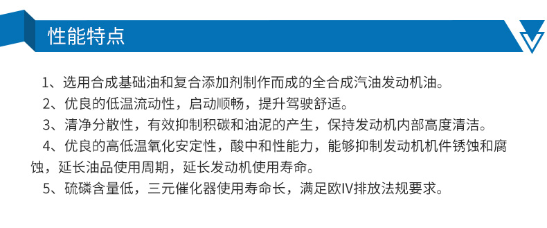 ●選用進口合成基礎(chǔ)油和進口復(fù)合添加劑精制而成的全合成汽油發(fā)動機油。優(yōu)異的低溫流動性,啟動順暢,提升駕駛舒適。清凈分散性,有效抑制積碳和油泥的產(chǎn)生,保持發(fā)動機內(nèi)部高度清潔。硫磷含量低,三元催化器使用壽命長,滿足歐Ⅳ排放法規(guī)要求。